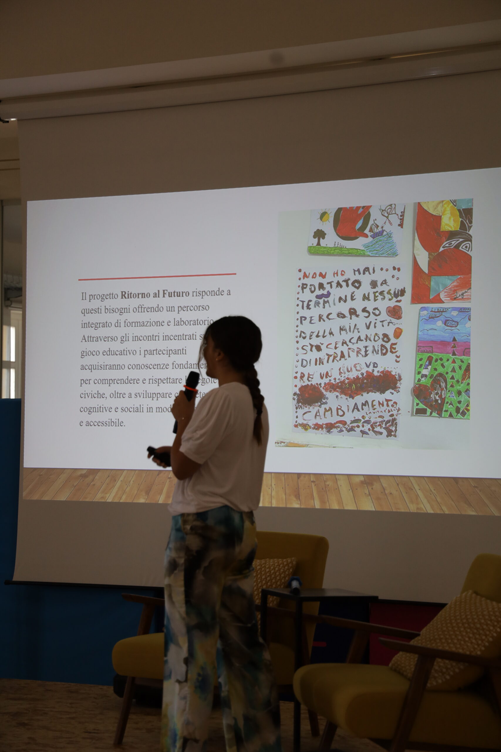 Videoproiettore con schermo, Mixer audio, Microfoni,  Sistema audio con casse di sala