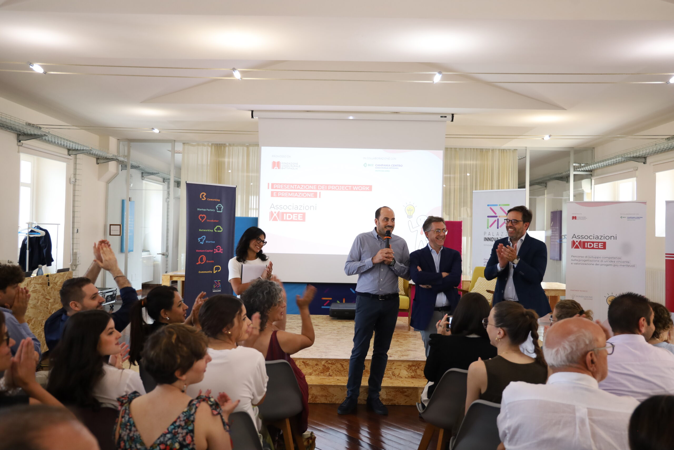 Emozione ed entusiasmo hanno caratterizzato l’evento finale della prima edizione di “AssociazioniXidee“. Il progetto, promosso dalla Fondazione Cassa Rurale Battipaglia in collaborazione con Banca Campania Centro e partner Tecnico Fondazione Saccone, nasce con l’obiettivo di favorire la cooperazione tra gli enti del Terzo Settore del territorio. Siamo felici che il Social Floor di Palazzo Innovazione sia stata la cornice di un progetto straordinario come questo. Passione, grinta ed impatto positivo sono la sintesi per descrivere al meglio come ciascun team ha presentato la propria idea. Infatti, la scelta del progetto vincitore da parte dei giudici non è stata sicuramente facile: abbiamo assistito ad una chiara dimostrazione di impegno e proattività da parte di tutti. Per questo motivo facciamo un grande in bocca al lupo a tutti i partecipanti: che le vostre idee possano prender forma nel minor tempo possibile!