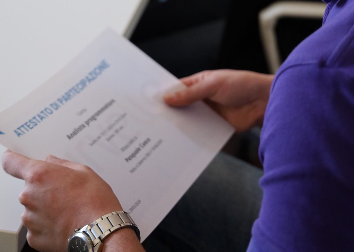 Il corso di Analista Programmatore, qui a Palazzo Innovazione, organizzato nell’ambito del Programma GOL da Virvelle, ha offerto ai partecipanti un’opportunità unica di crescita professionale. Dopo un percorso formativo intenso e coinvolgente, i partecipanti hanno avuto l’occasione di presentare i propri progetti, frutto del lavoro svolto durante il corso. Con grande entusiasmo e soddisfazione, ciascuno di loro ha ricevuto l’attestato di partecipazione, simbolo del successo e dell’impegno profuso. Questo corso ha confermato ancora una volta quanto la formazione sia un elemento chiave per il successo individuale e per la crescita professionale. Ha permesso ai partecipanti di acquisire le competenze necessarie per entrare nel mondo del lavoro e per affrontare le sfide future, preparandoli ad affrontare con sicurezza e competenza il panorama professionale in continua evoluzione.