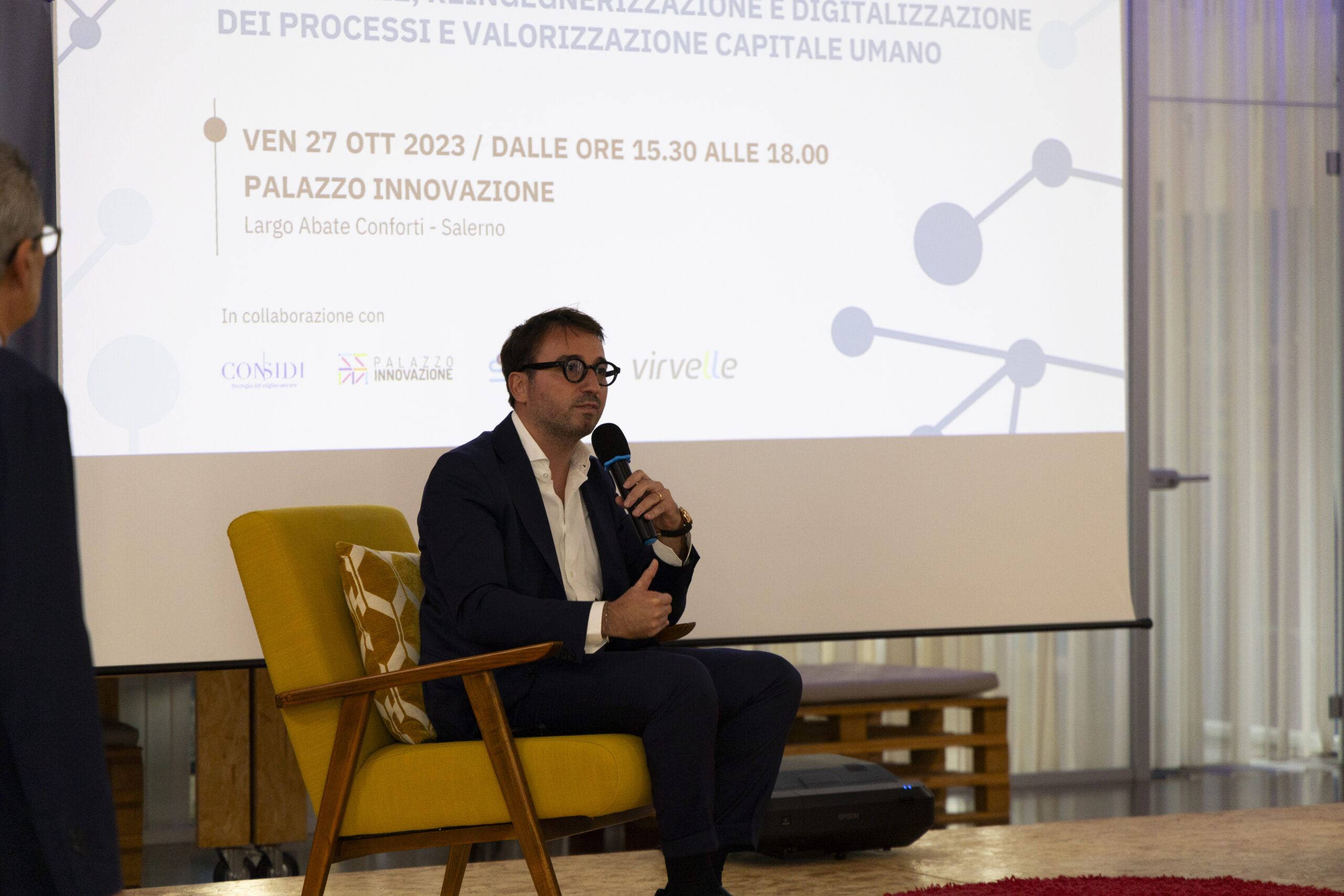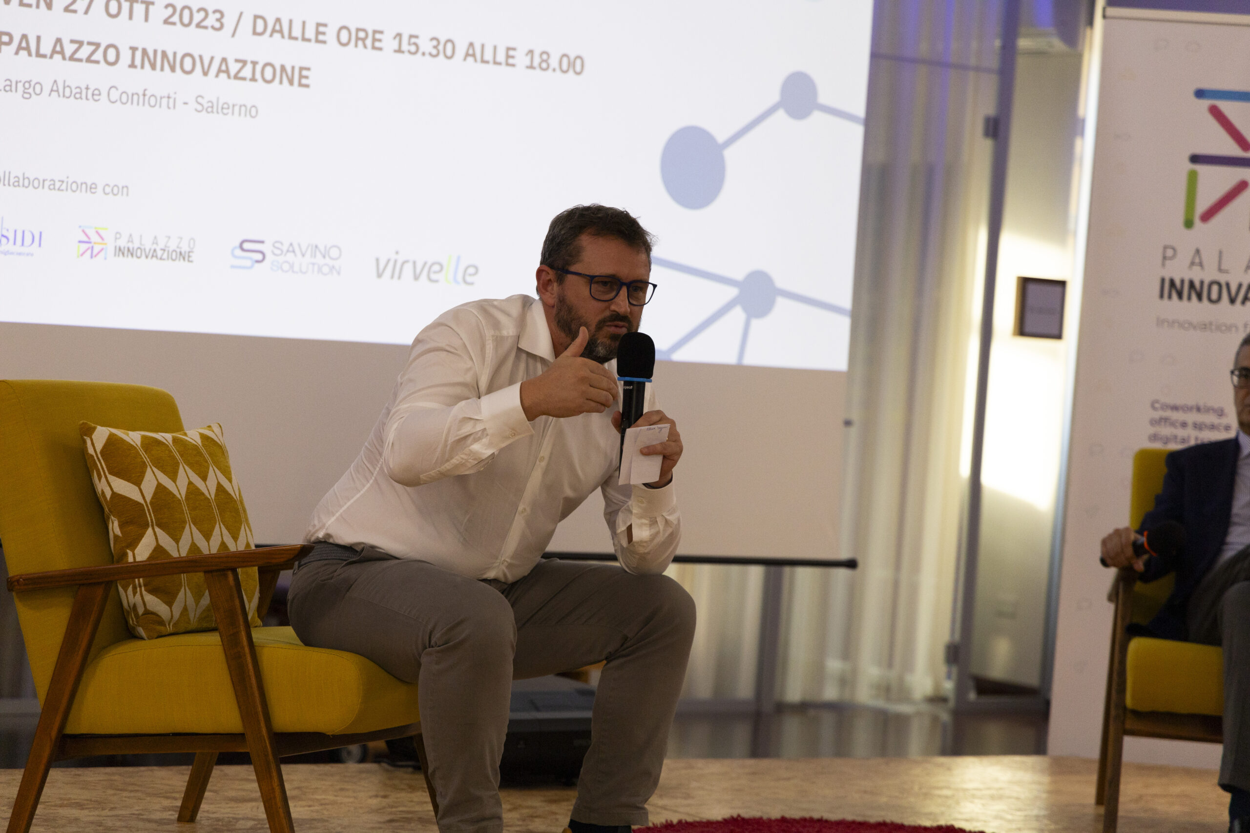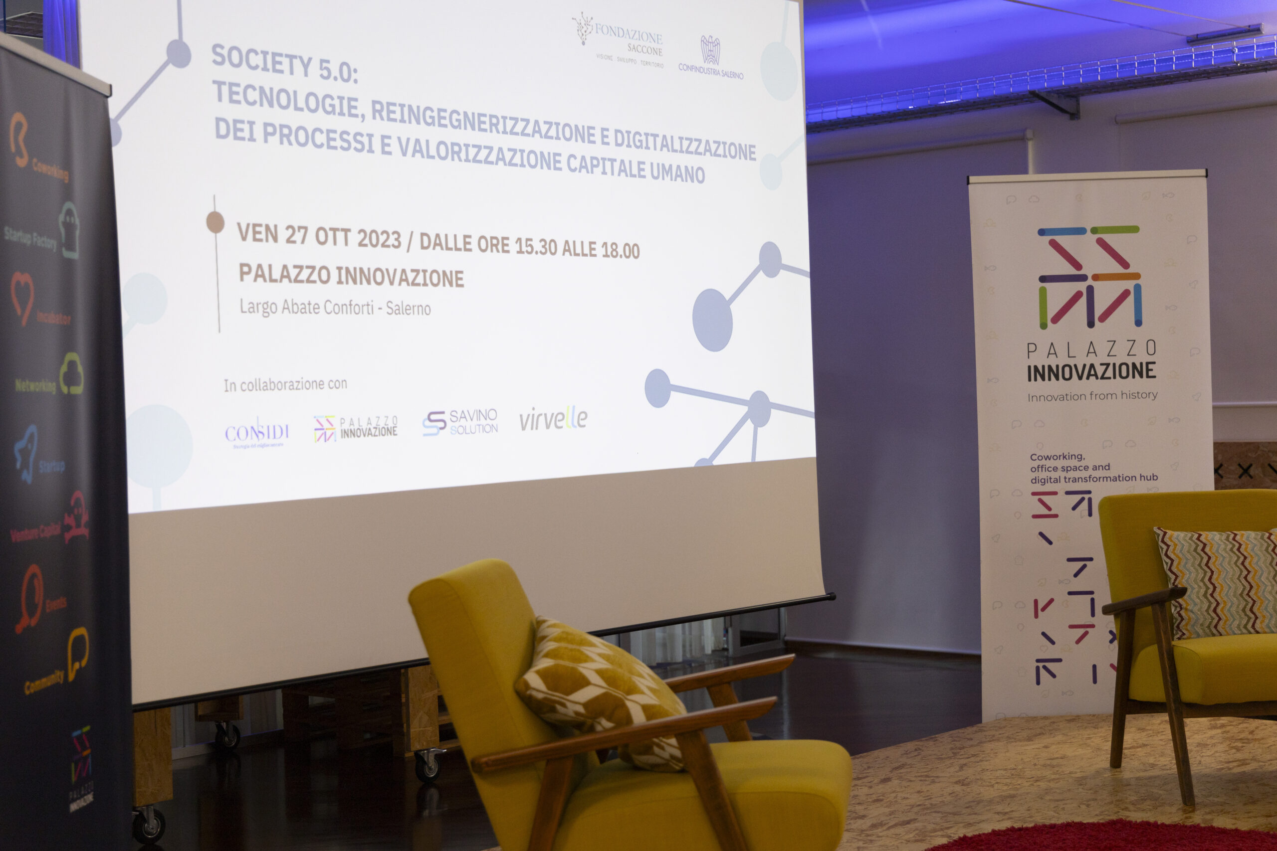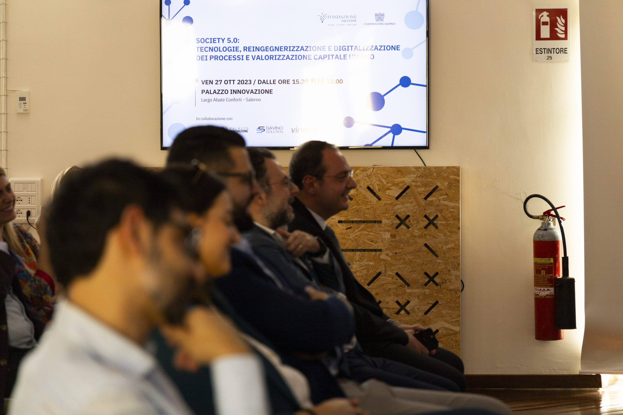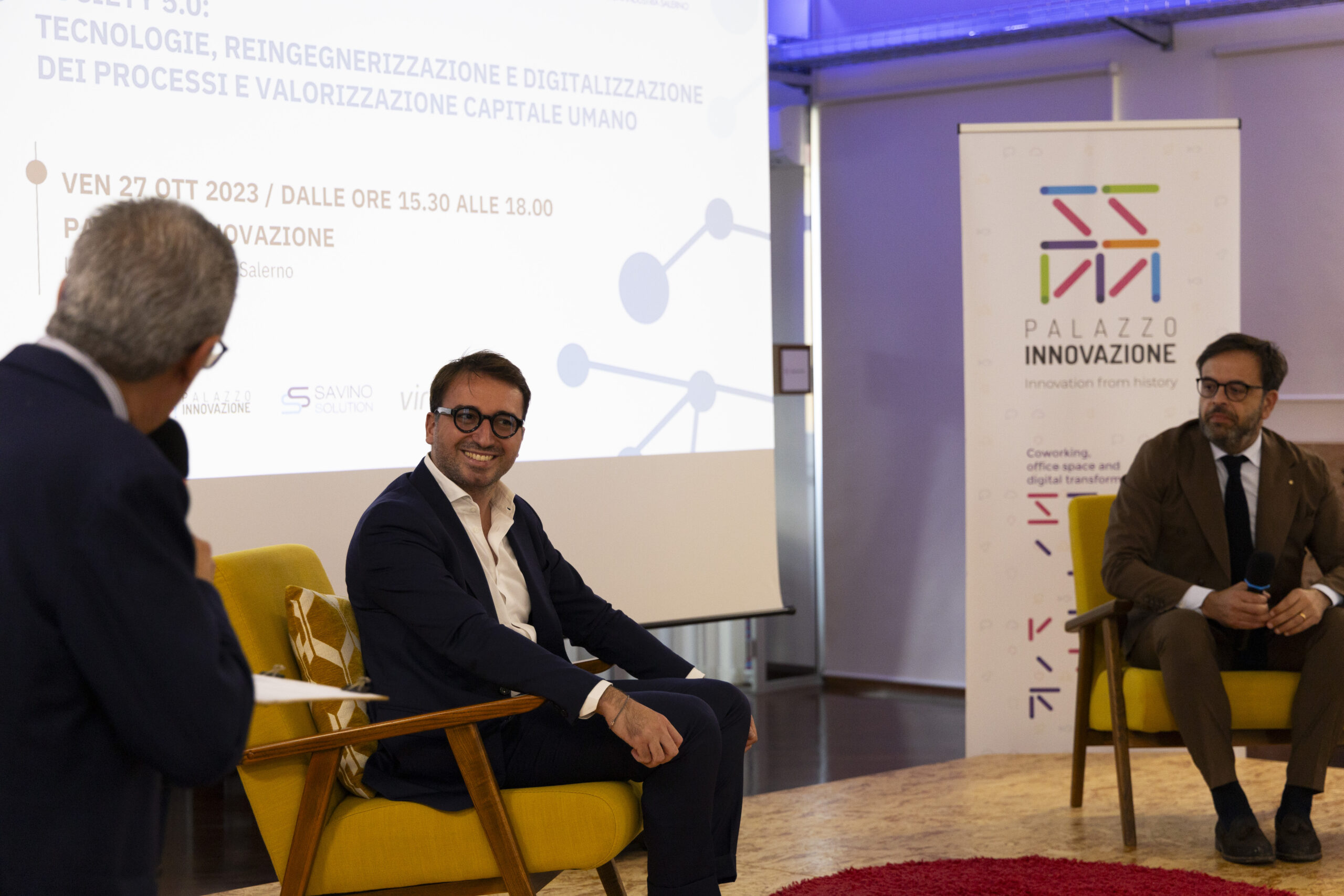 Society 5.0: tecnologie, reingegnerizzazione e digitalizzazione dei processi e valorizzazione capitale umano”. Ecco gli scatti della seconda tappa del Digital Meet 2023, organizzato dalla Fondazione Saccone a Palazzo Innovazione. Un importante momento di confronto con esperti sul tema della digitalizzazione. Sono intervenuti nel corso dell’appuntamento: – Giorgio Scala, Presidente Fondazione Saccone e Responsabile 012Salerno sede territoriale di 012factory; – Edoardo Gisolfi Coordinatore Comitato Tecnico-Scientifico Fondazione Saccone; – Marco Gambardella Vicepresidente Confindustria Salerno con delega alla Digitalizzazione Interventi; – Alessia Saggese Dip. di Ingegneria dell’Informazione ed Elettrica e Matematica Applicata (DIEM); – Nicola Savino – Il Digitalizzatore CEO di Savino Solution SpA Società Benefit; – Mario Vitolo CEO Palazzo Innovazione e General Manager Virvelle; – testimonianza di una buona prassi di Antonio Pallavicino Direttore Operativo CO.ME.P. Srl.