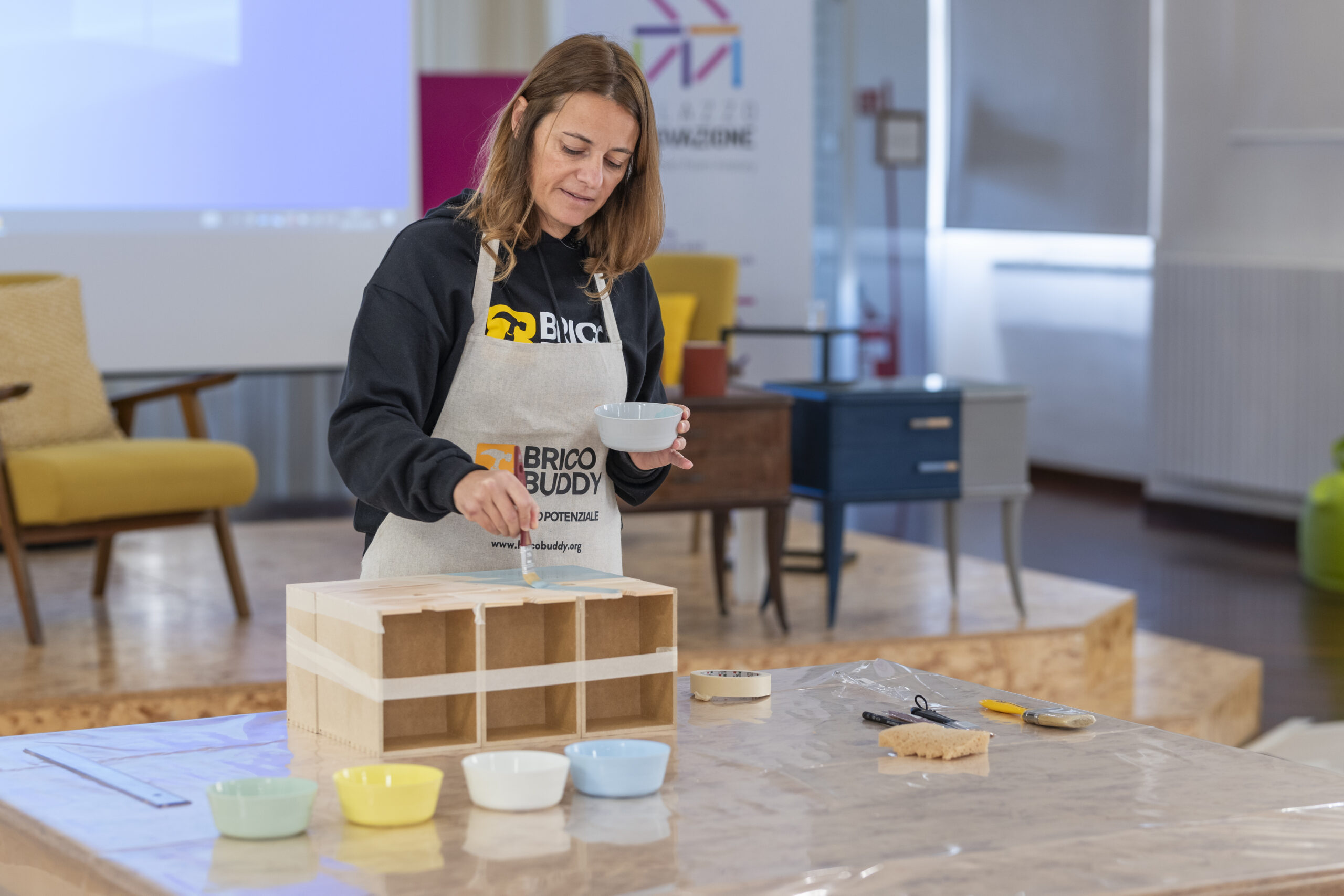 A Palazzo Innovazione siamo felici di aver ospitato il primo laboratorio creativo di BricoBuddy, un’esperienza coinvolgente che ha unito creatività, manualità e apprendimento. I partecipanti hanno avuto l’opportunità di esplorare strumenti e materiali, guidati dalla professionalità e passione dell’esperta Mariagrazia Lanzetta di Rilab. Insieme, hanno dato nuova vita a un oggetto d’arredo, riscoprendo l’arte del restyling e il piacere del fai-da-te. È stato un momento speciale di condivisione, in cui ciascuno ha potuto esprimere la propria creatività e scoprire trucchi e tecniche per diventare veri “aggiustatutto”. Siamo orgogliosi di aver contribuito a questa esperienza che ha ispirato e unito i partecipanti, sprigionando nuove idee e una forte energia positiva!