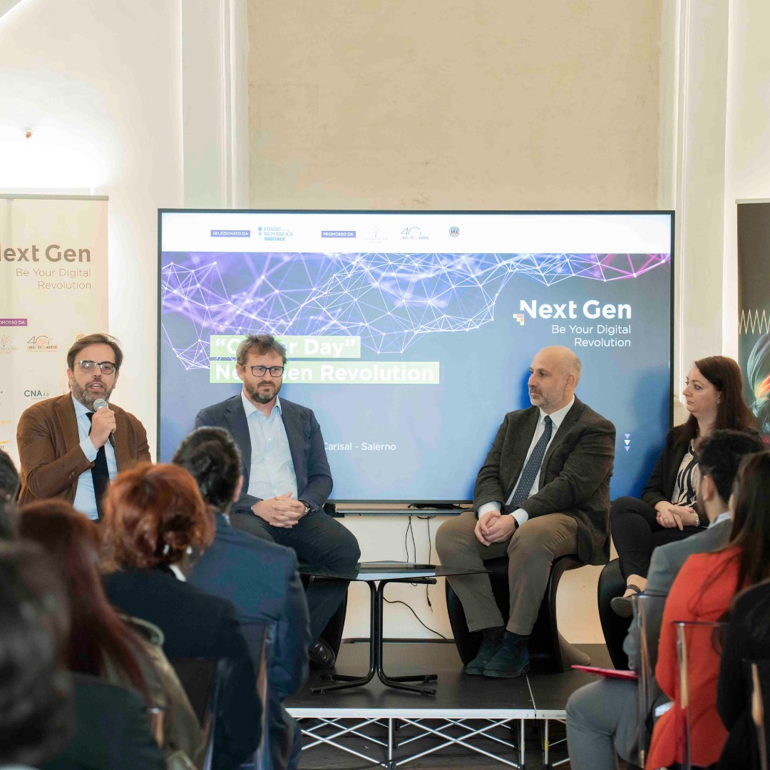 Great attendance at the San Michele Complex in Salerno for the Career Day of “Next Gen – Be Your Digital Revolution”, the project dedicated to young people aged 16 to 34, promoted by Fondazione Saccone and selected by the Fondo per la Repubblica Digitale.
